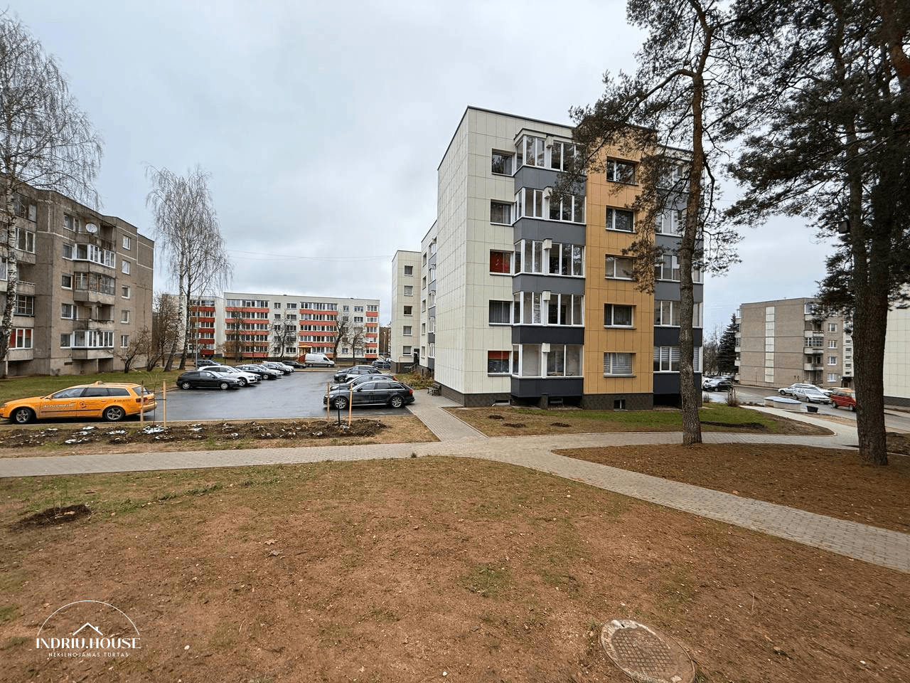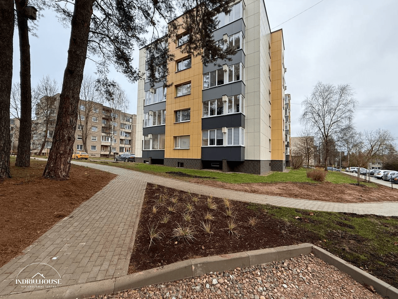 Atnaujintas ir sutvarkytas namo kiemas bei išplatinta automobilių stovėjimo aikštelė.