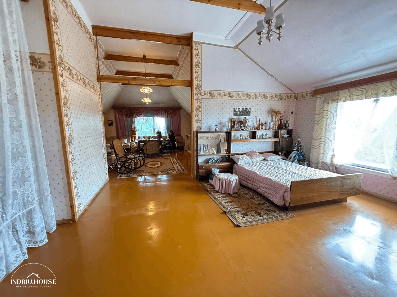 • Pirmame aukšte: 2 kambariai, svetainė, vonios patalpa, tualetas, virtuvė, prieškambaris;