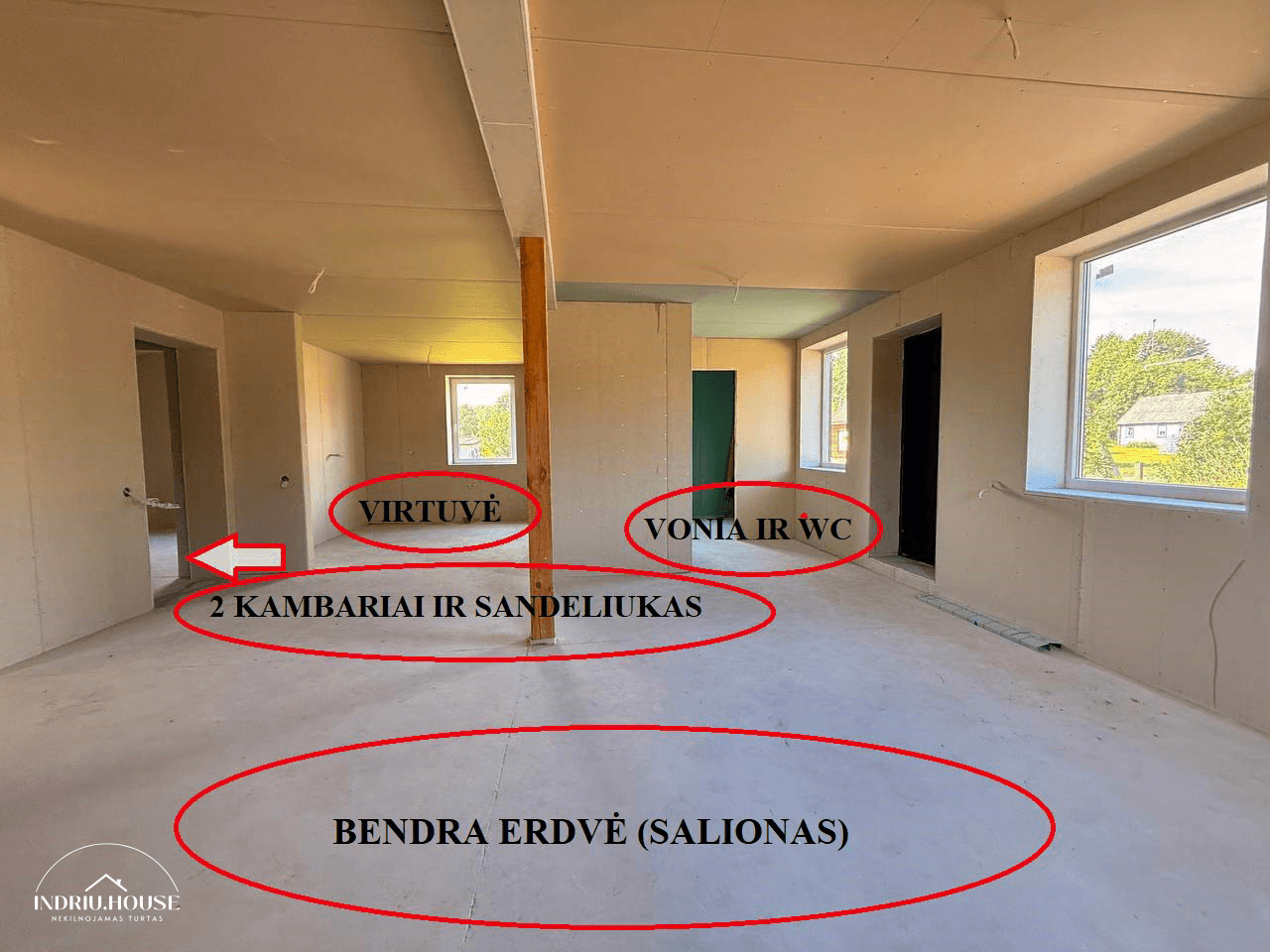 Visapusiškai geras namas, atlikti namo pagrindiniai statybos darbai - Jums tereikės pasirūpinti vidaus interjero įrengimu.